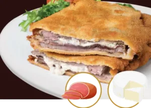 Una deliciosa fusión astur-leonesa de los mejores filetes de Ternera Asturiana (IGP) rellenos de una sabrosa cecina de vaca curada en su punto y un cremoso queso tierno de leche de cabra, todo ello recubierto de nuestra mezcla secreta de panes rallados que consiguen un rebozado muy crujiente y dorado.